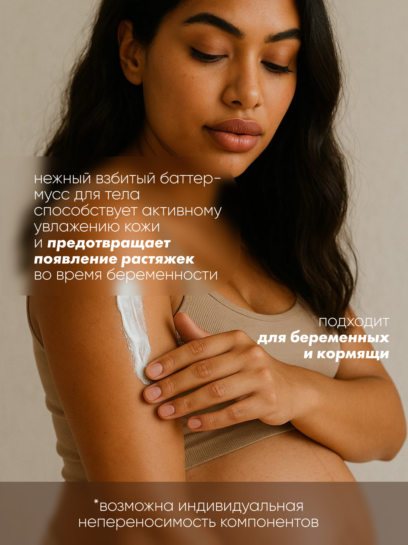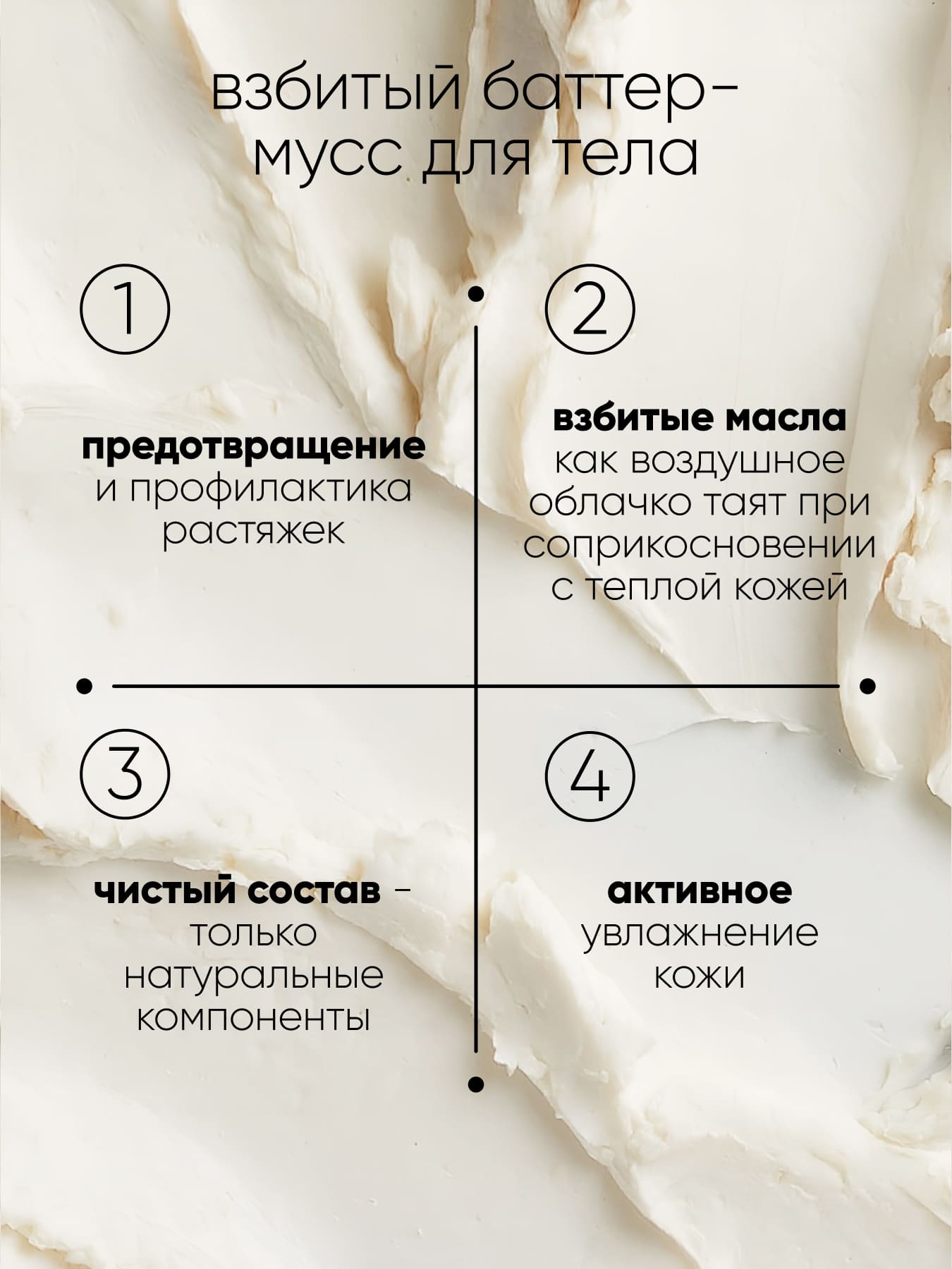 Нежный мусс для тела с насыщенной текстурой буквально тает на коже. Натуральная формула с грейпфрутом, мочевиной и экстрактом репчатого лука помогает уменьшить видимость растяжек и предотвратить их появление. Ланолин, масла ши и какао увлажняют и разглаживают кожу, возвращая ей эластичность и сияние. Пантенол, коллаген и эластин устраняют чувство сухости и стянутости, смягчают и успокаивают кожу. Нежная текстура обеспечивает быстрое впитывание без липкости и жирности. Баттер-мусс окутывает кожу нежным и освежающим ароматом зеленого чая, наполняя каждый момент ощущением гармонии и спокойствия.